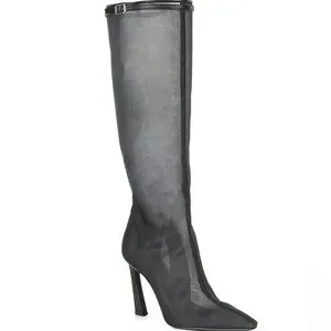 From Gianni Bini, the Adams Clear Mesh Stiletto Tall Boots feature: