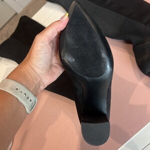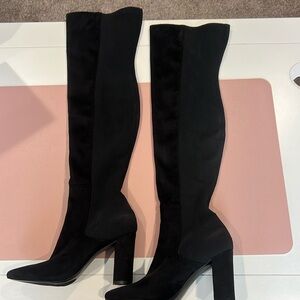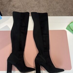 Thigh high black boots! Suede on front with a different material on back. Only worn once!