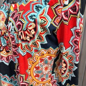 This vibrant tunic from Source Unknown showcases a striking graphic design in blue and orange tones. Featuring long sleeves and a scoop neckline, it offers a comfortable fit with a bohemian flair. The tunic's bold pattern and extended length make it a standout piece in any collection.