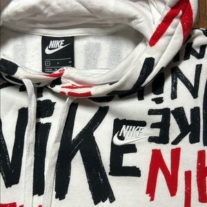 Men’s S Nike Sportswear Hoodie White Black and Red Nike All Over