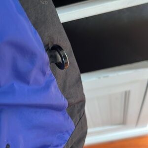 Durable jacket by The North Face. Features Gore-Tex material. Stylish black and blue design.