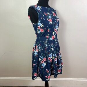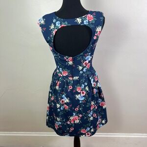 Emerald Sundae Floral Print Dress Open Back Fit & Flare Party Dress M