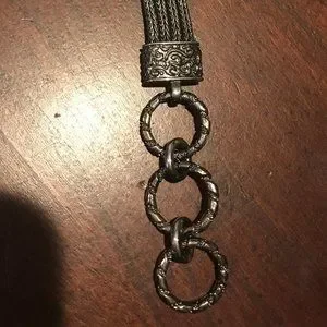 Multi-strand wheat bracelet band w/ scroll-design endcaps + fancy adjustable toggle closure