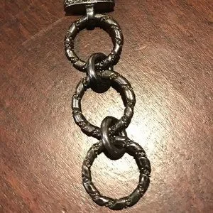 Oxidized, antiqued round case w/ scrollwork design; stainless steel caseback