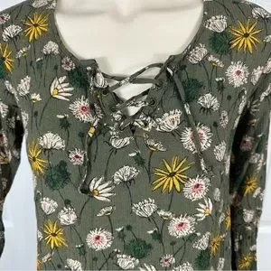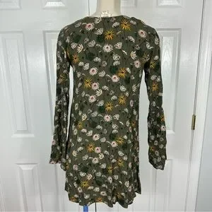 MOSSIMO SUPPLY CO mini dress TUNIC TOP floral boho print olive green gold S
