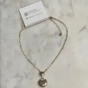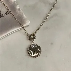 The Santorini Pendant Necklace features a textured scallop shell pendant, set in radiant 18k gold plating. Inspired by the beauty of the sea, it adds a touch of coastal luxury to any look.