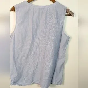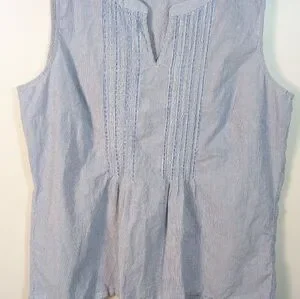 Talbots Blue Whit Stripe Cotton Pintuck Tank Top