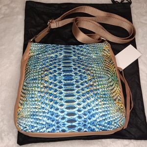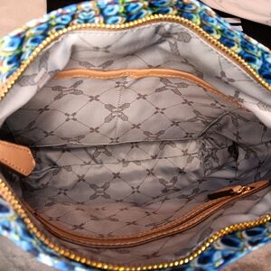 Stylish and versatile, this bag features a striking blue pattern with tan accents. Perfect for any occasion, it combines fashion with functionality.