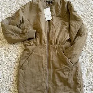 Zara Tan Bomber Jacket dress with Elasticized Waist