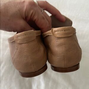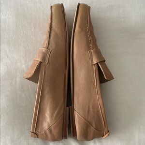 New/unworn penny loafer in a gorgeous color of nude. So comfortable and chic! These were purchased from the JH sample sale and they may be one of a kind. Please notice small flaw in the leather on the outside of the left shoe. See pictures for color and condition/description. Priced accordingly.