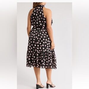 London Times Black and Pink Polka Dot High Low Dress