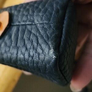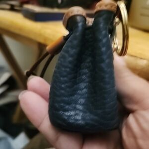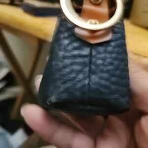 Experience the elegance of the Dooney & Bourke wallet, crafted with a striking combination of black and brown leather. The textured design and detailed stitching highlight the brand's commitment to quality and style. Perfect for those who appreciate a blend of classic and contemporary aesthetics.........key fob not a bag vintage see pix bit paint loss bottom corner very minor ..this came from the same unit as the ritz carlton club mugs Dr clean out