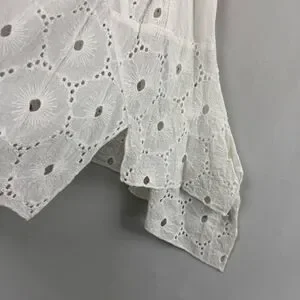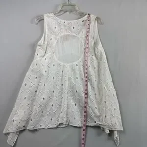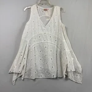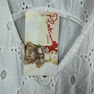 NWT Platinum Blouse Womens Small Medium White Tunic Eyelet Embroidery Asymmetrical Hem