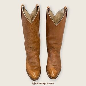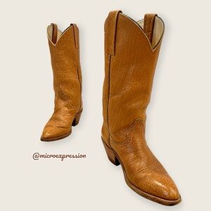1980s VINTAGE Frye Grainy Tan Brown Leather Pull On Western Boho Cowboy Boot