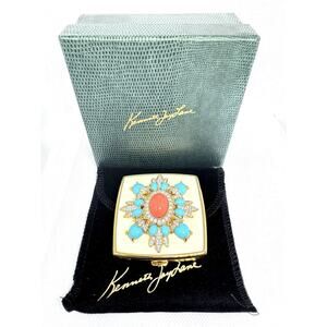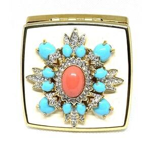 NIB VINTAGE! KENNETH LANE CORAL TURQUOISE RHINESTONE COMPACT MIRROR VANITY RARE