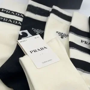 Discover the elegance of Prada's casual socks, featuring a sophisticated black and white color palette. Crafted from high-quality materials, these socks offer both comfort and style, making them a perfect addition to any wardrobe. The prominent Prada branding adds a touch of luxury to each pair.set 5 pairs