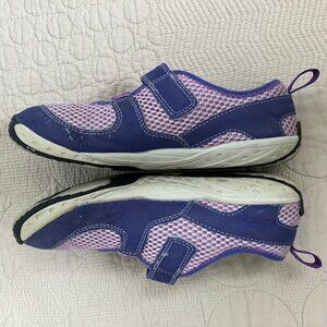 Two pairs from Merrell's minimalist glove line - Trail Glove sz. 3 with elastic laces and velcro closure, and Pure Glove mary jane with elastic and velcro closure. Loved these for our kids - quick on/off, zero-drop, foot-shaped, and kept good traction on slides, bike pedals, etc. Please see photos for wear. My daughter wore these about the same time, thicker socks with the sz. 3 shoes and thinner socks with the mary janes.