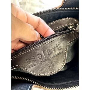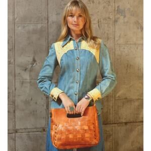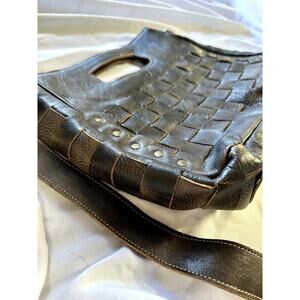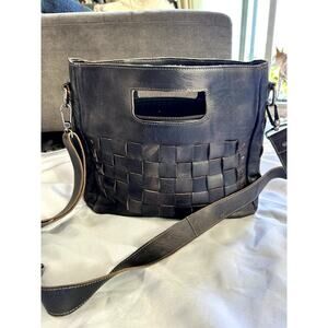 Stylish crossbody bag with woven leather design. Features adjustable strap and metal accents. Perfect for everyday use.