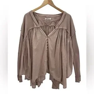 We The Free People Lyrical Tunic Button Front Blouse Flowy Soft Boho Indie Top M