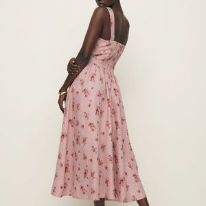 Charming pink midi dress with floral pattern. Sleeveless design. Perfect for any occasion.