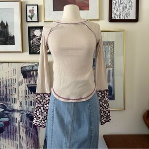 Gorgeous Free People thermal with contrast cuffs. Color is oat, a lovely pale beige/cream color. Excellent preowned condition. Only worn a couple times. Very well cared for, never put in the dryer. Size small.