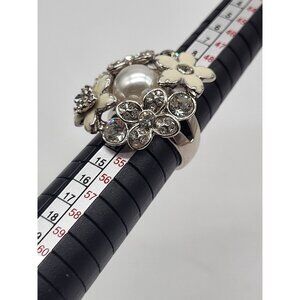 Lia Sophia "Catch The Bouquet" Crystal Rhinestone Faux Pearl Fashion Ring Size 6