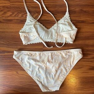 Elegant Xhilaration bikini bottom. Cream and tan with intricate patterns.