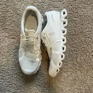 Pre-loved white Cloud 5 On Cloud Running shoes. Women’s size 8