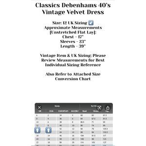 - Vintage items may be sized differently; smaller than today’s sizes. This is also UK sizing; please see conversion size chart & approximate measurements for best individual fit reference.