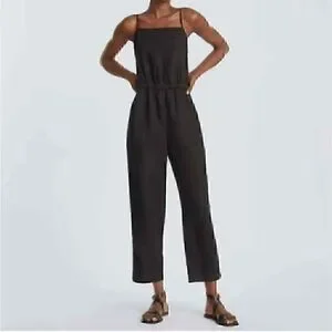 NWT Everlane 100% Linen The Shoestring Apron Jumpsuit Black XS