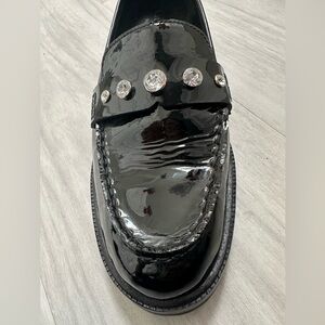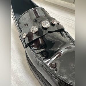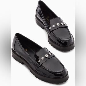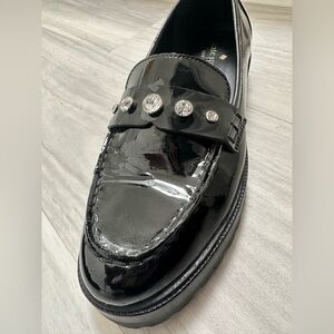 Kate Spade Patent Black Loafers with Rhinestone Accents
