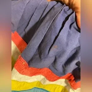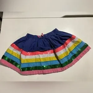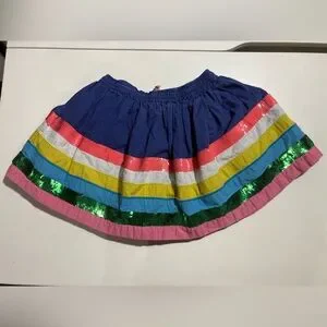 Mini Boden Blue Rainbow Sequined Gathered Skirt Elastic Waist Drawcord Size 5-6