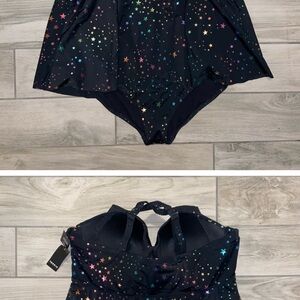 TORRID BLACK & RAINBOW STAR TWIST FRONT SWIMSUIT