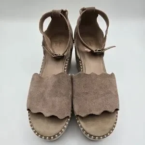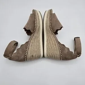 Crown Vintage Daffodil Brown Suede Espadrille Wedge Sandals Size 7.5