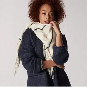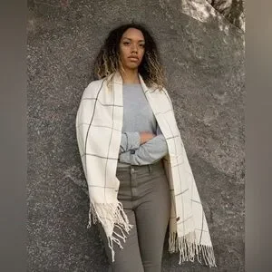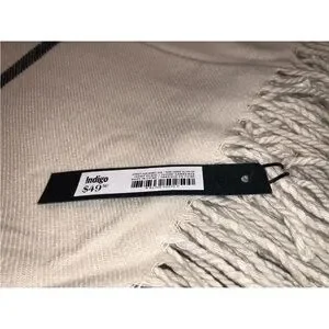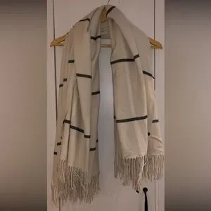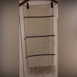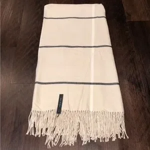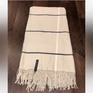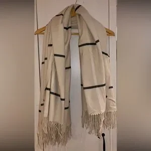 BNWT Indigo Love & Lore Cream and Black Striped Scarf with Fringe