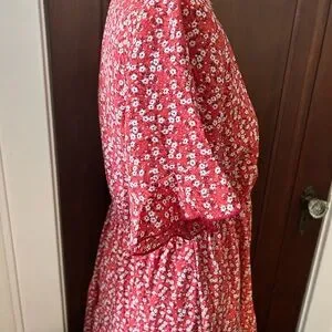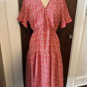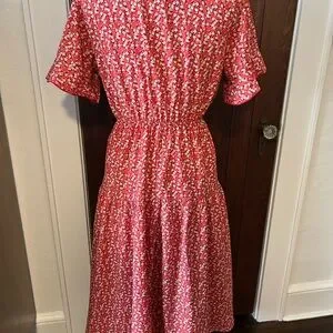 Vibrant red dress with white floral pattern. Perfect for a spring / summer day to stay cool!