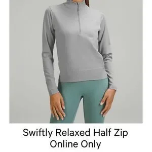 Lululemon Swiftly Relaxed Half Zip, Gull Grey / White, Sz 8, No Flaws