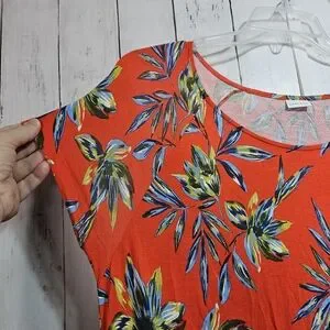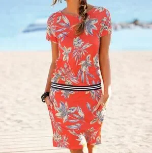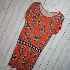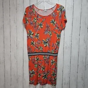 Lascana Tropical Orange/Red Floral Short Sleeve Pullover Knit Dress Size 8.