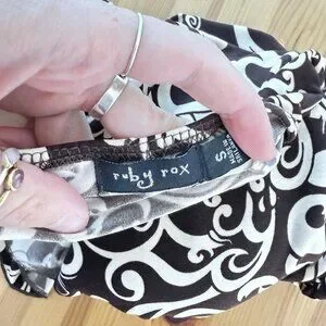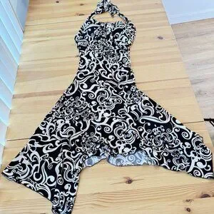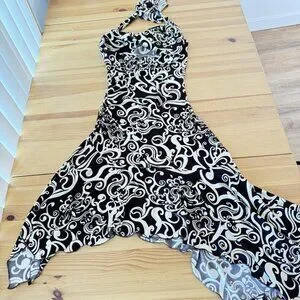 Y2K Ruby Rox Brown Floral Mini Dress Ruched Halter Fairy 90s Asymmetrical Hem S