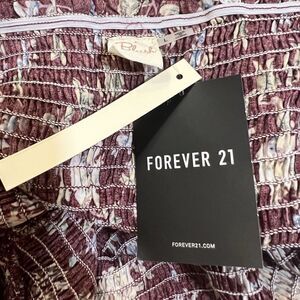 NWT Forever 21 "Blush" line dress/top in a burgundy floral print, size L. Worn off the shoulder with adjustable spaghetti straps and smocked bust for a flattering, comfy fit. Lightweight rayon makes it great as a summer mini dress or tunic top. Cute layered for festival or casual boho vibes. MSRP $24.90.