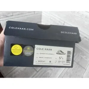 The Cole Haan Women's ZeroGrand W30247 Generation II sneakers in size 5.5 feature a stylish combination of mauve shadow and ivory colors. These lace-up sneakers have a low top shoe shaft style and a comfortable insole made of fabric. The Zerogrand product line from Cole Haan is known for its colorful and athleisure theme, making these sneakers perfect for casual occasions during the summer, fall, and spring seasons. With a heel height of 1 inch, these sneakers offer comfort and support for everyday wear.
