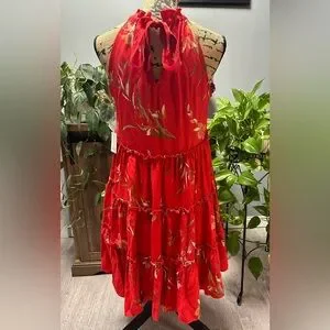 Cece Floral Print Tiered Halter Dress in Fiery Red. NWT.