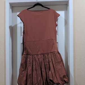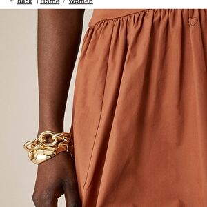 Embrace effortless style with this J. Crew sundress, showcasing a charming terracotta color and a sleeveless, crew neck design. The pleated bubble skirt adds a touch of playfulness, while the structured fabric maintains a flattering silhouette. Perfect for casual outings, this dress combines comfort and elegance seamlessly.
