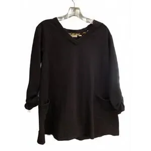 Susan Graver Navy Blue V Neck Sweatshirt Tunic Size Large
