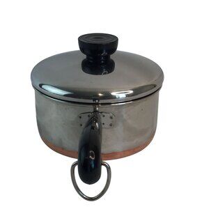 Discover the charm of vintage cooking with this Revere Ware 1 Qt saucepan. Featuring a double ring design, it combines copper and stainless steel for efficient heat distribution. Made in Indonesia, it's perfect for both collectors and everyday chefs.