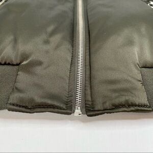 NEW WITH TAG Philosophy shiny satin-like 90s style zip-up bomber jacket in a rich olive green color. Accented with silver zippers. All zipper pulls are a circle just like the 90s and Y2K era. Two functioning pockets on the front. Fabric is satin-like (looks and feels like it) and is also super puffy and comfy. Fulling lined inside. A very beautiful jacket in person. Perfect for the upcoming Spring! In excellent brand new condition with no flaws. Please see photos and video for measurements and details. Women's size XSMALL.