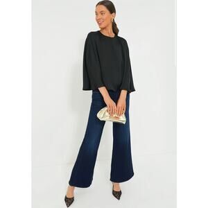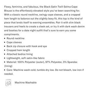 TUCKERNUCK Black Satin Twill Selma Cape Blouse NWT Size Small