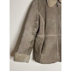 Guess Shearling Jacket Womens Medium Tan Faux Fur Lined Suede leather coat y2k
