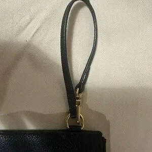 Stylish Louis Vuitton wristlet in black and white. Features iconic monogram design.