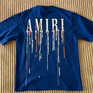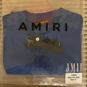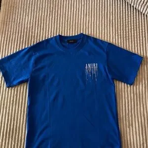 Never worn. Experience the perfect blend of style and comfort with this AMIRI blue short sleeve tee. Crafted from high-quality materials, it features the iconic AMIRI logo on the front, making it a standout piece in any wardrobe. Ideal for casual outings, this tee offers a sleek and modern look.